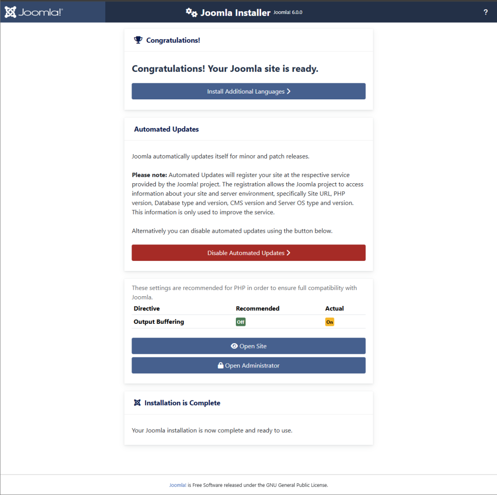 [root@Joomla ~]# rm -rf /var/www/html/installation [root@Joomla ~]#