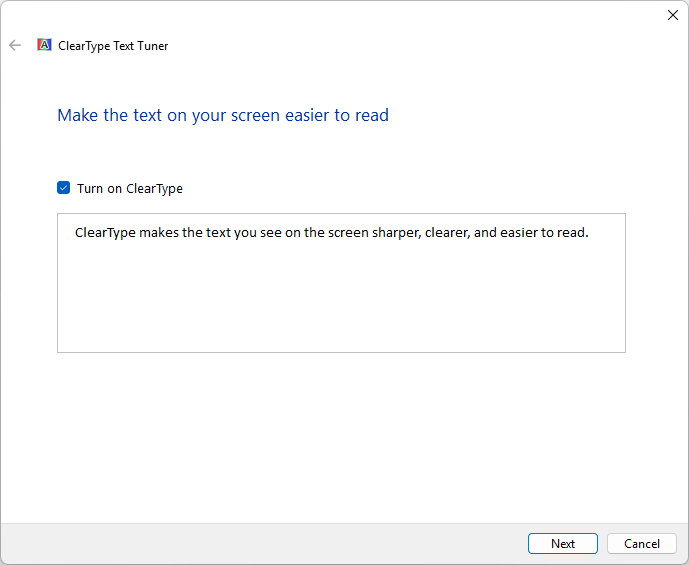 - After connecting to your Windows VPS, press Win + S and search for ClearType.